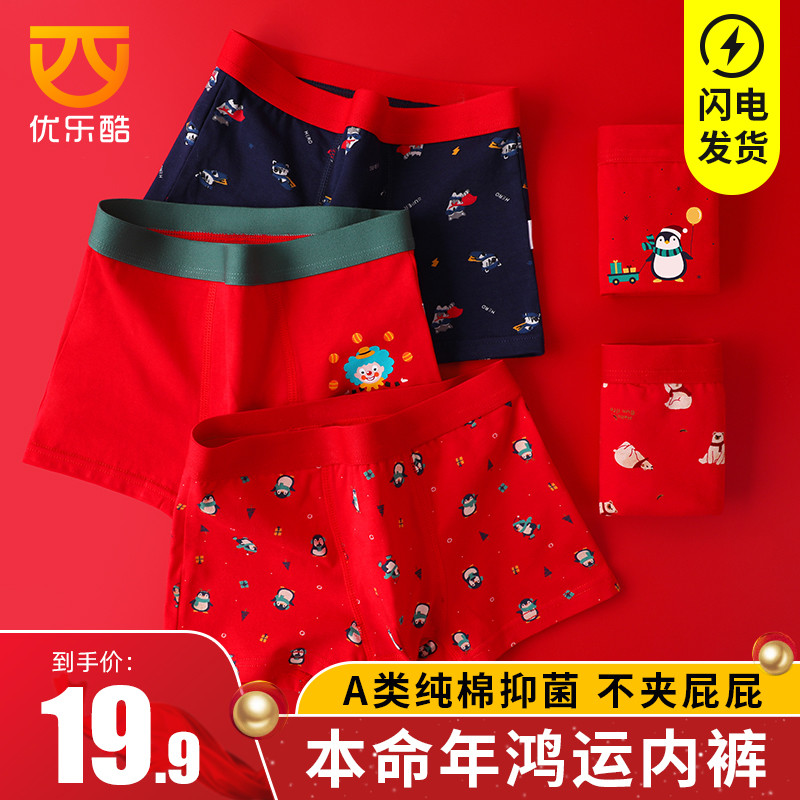 【产品名称:儿童红色内裤男童纯棉平角四角12岁中大童虎年本命年短裤全棉100%】