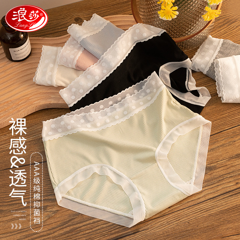【产品名称:浪莎中高腰内裤女薄纯棉抗菌裆性感蕾丝边提臀大码包臀女士三角裤】