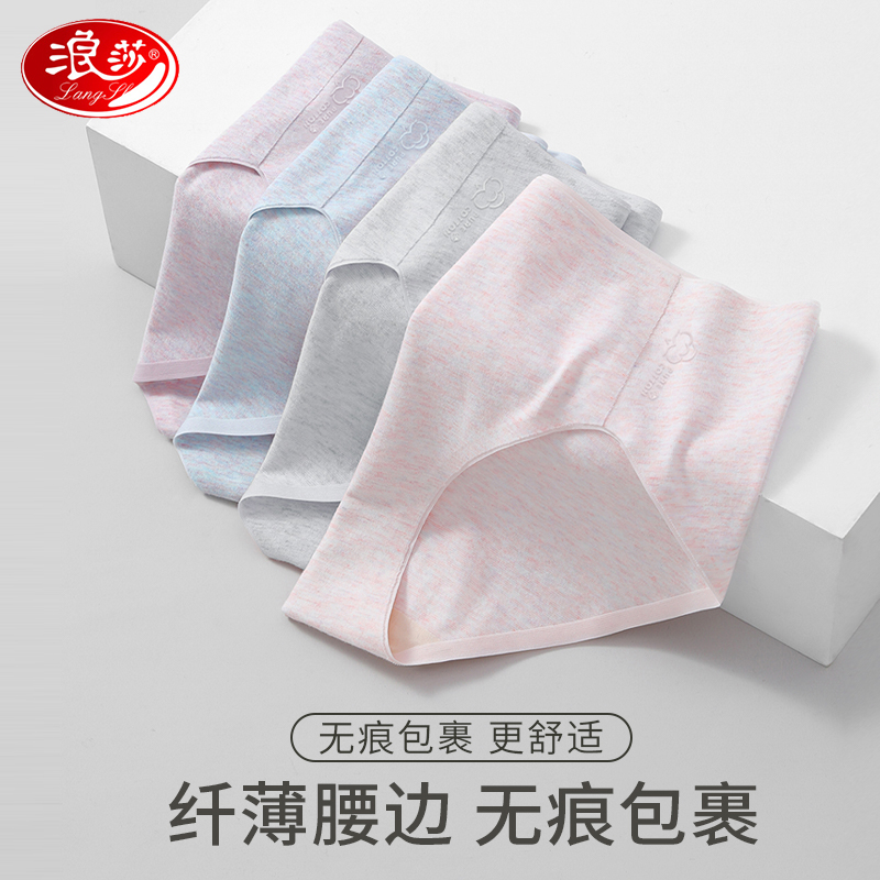 【产品名称:浪莎无痕纯棉内裤女中腰彩棉抗菌舒适包臀柔软透气提臀女士三角裤】