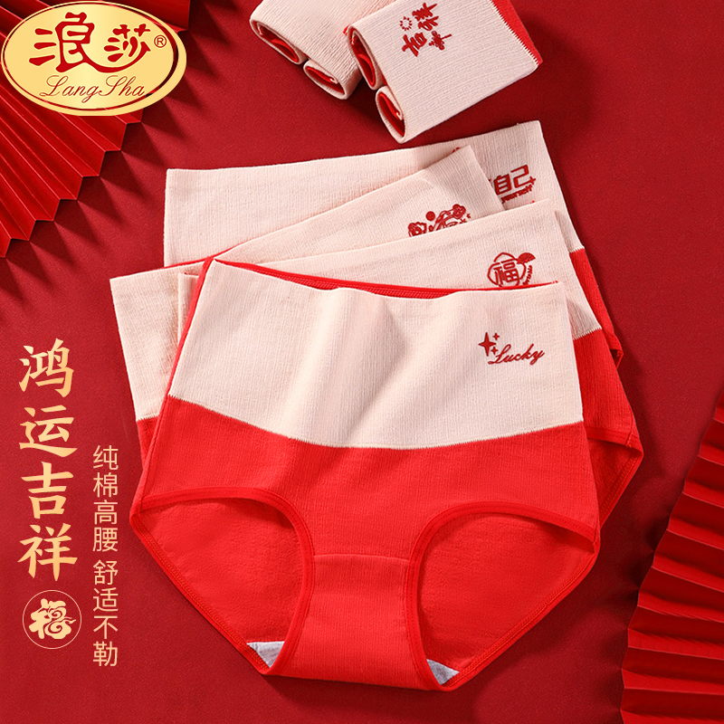 【产品名称:内裤女士纯棉裆抗菌本命年大红色鸿运结婚属龙年高腰收腹三角裤LS】
