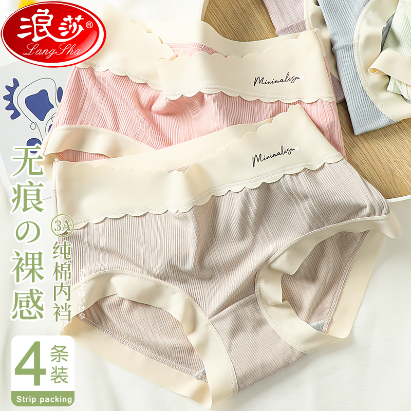 【产品名称:浪莎无痕内裤女士纯欲夏季中腰透气冰丝抑菌裆薄款日系少女风短裤】
