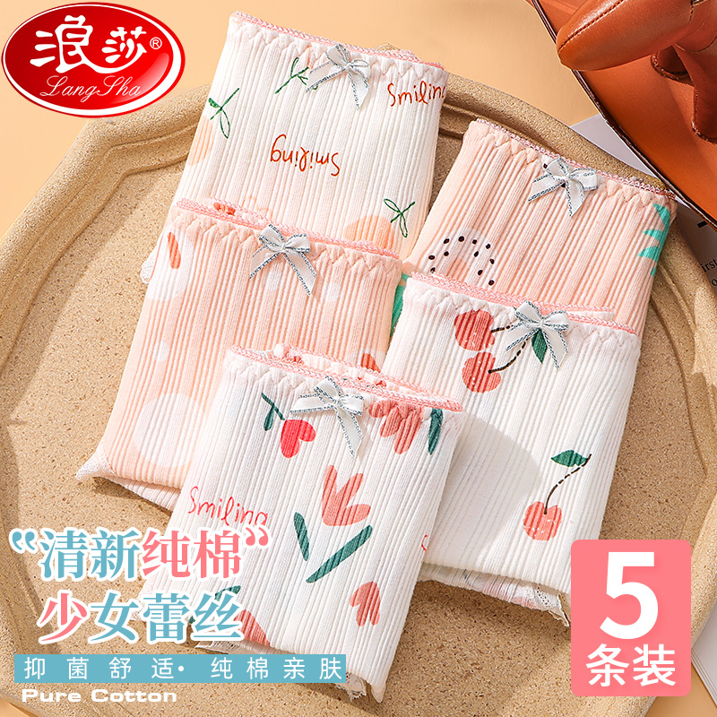 【产品名称:浪莎纯棉女士内裤女全棉裆抗菌无痕中腰少女印花可爱学生日系三角】
