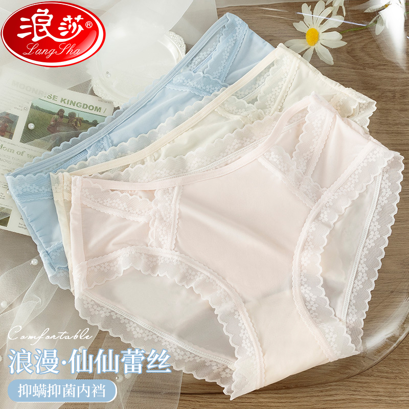 【产品名称:内裤女士中低腰抗菌桑蚕丝裆性感薄款女生春夏季蕾丝三角短裤头MX】