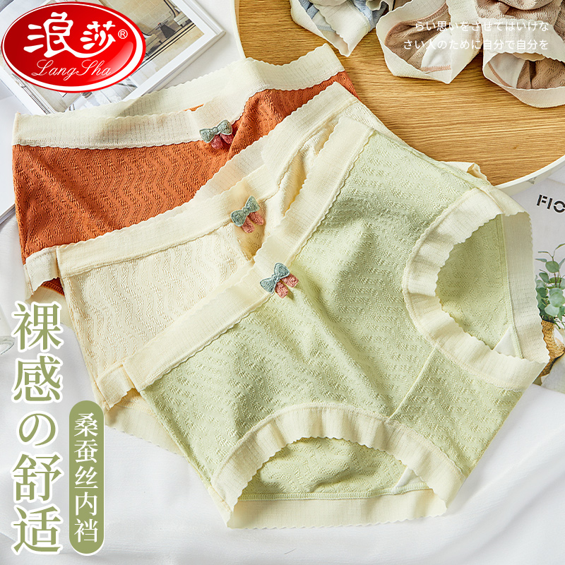 【产品名称:无痕内裤女士纯欲夏季中腰透气冰丝蚕丝抑菌裆薄款日系少女风短裤】