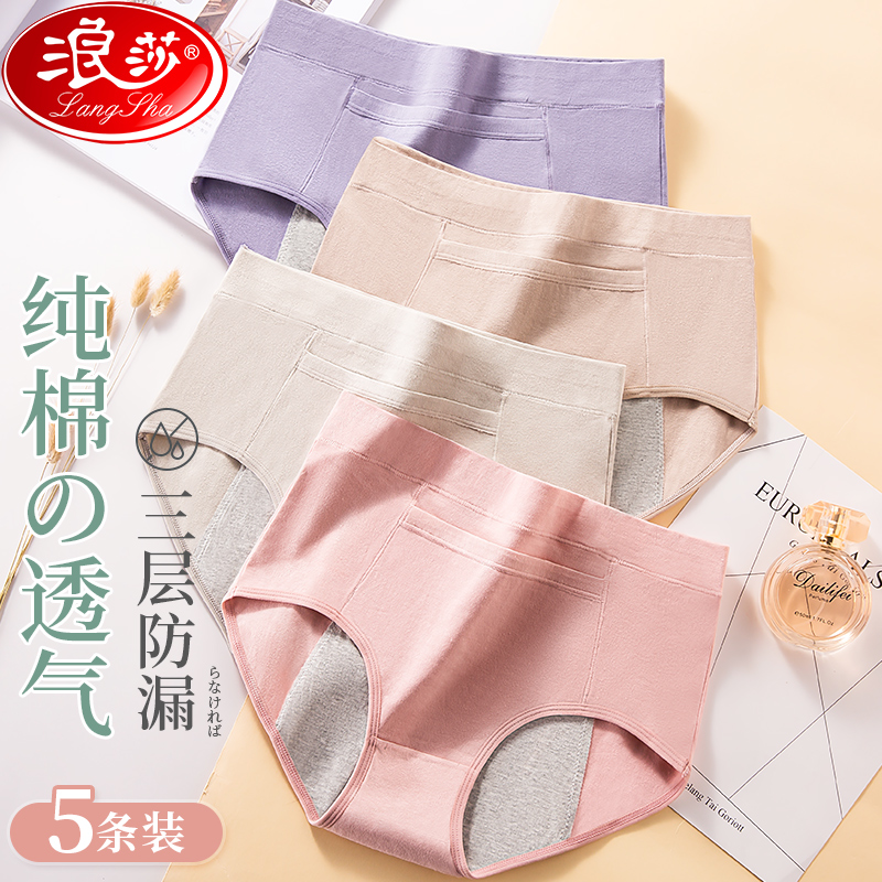 【产品名称:浪莎生理内裤女士月经期防漏安全裤少女中腰透气纯棉裆姨妈卫生裤】