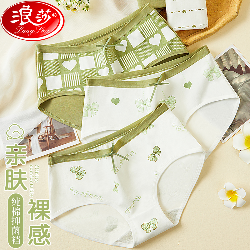 【产品名称:女士内裤纯棉100%全棉裆抗菌中腰无痕性感日系甜美少女生三角短裤】