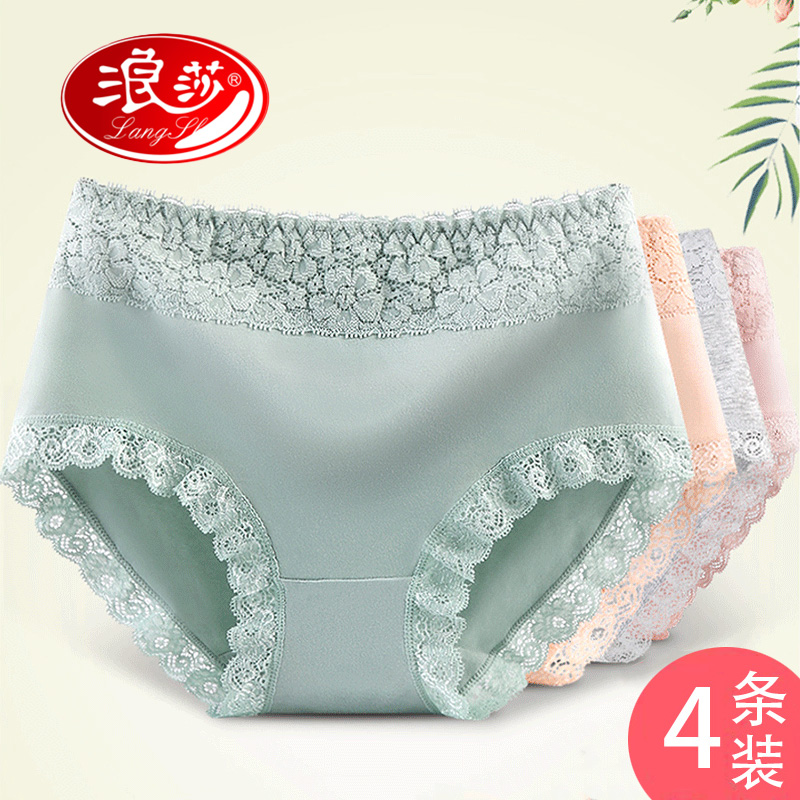 【产品名称:浪莎女士内裤女纯棉透气抑菌蕾丝三角裤衩性感无痕高腰全棉档短裤】