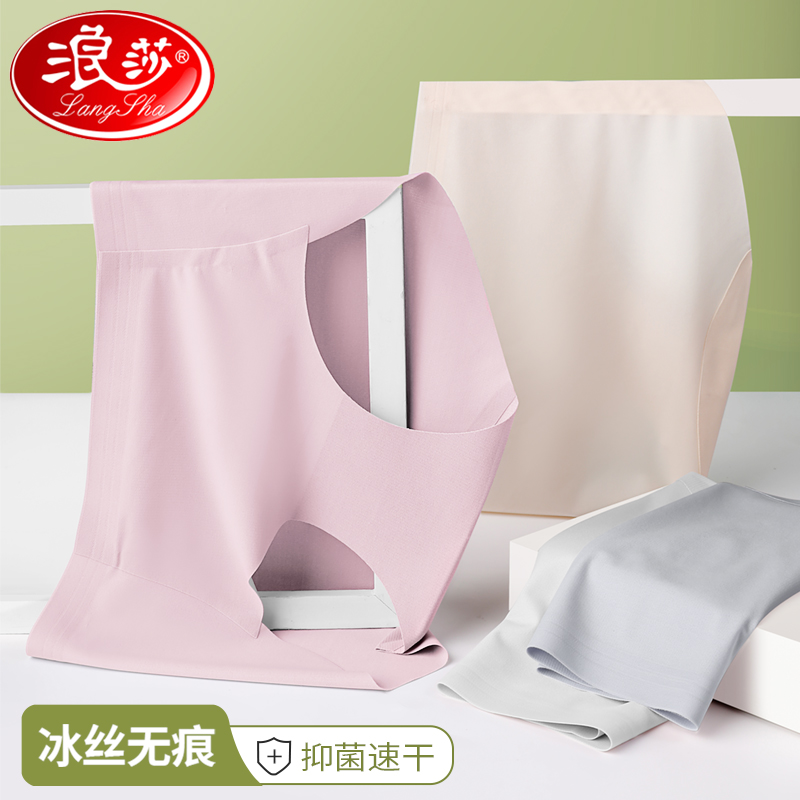 【产品名称:浪莎无痕内裤女冰丝裸感夏薄款莫代尔一片式不夹臀中高腰女士短裤】