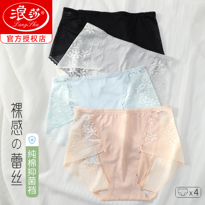 【产品名称:浪莎内裤女夏季薄款蕾丝性感中腰速干无痕女士全棉裆收腹提臀短裤】