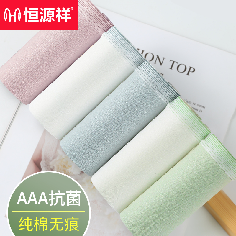 恒源祥纯棉女士内裤平角裤全棉透气无痕抗菌少女生三角短裤头中腰