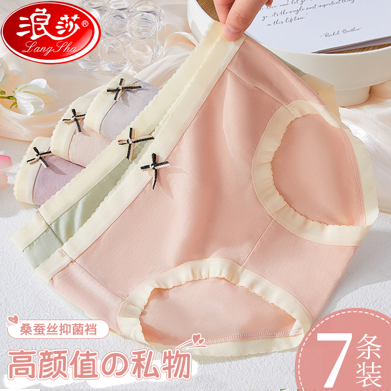 【产品名称:浪莎内裤女士中腰无痕蚕丝抗菌裆纯棉日系少女生性感纯欲三角短裤】