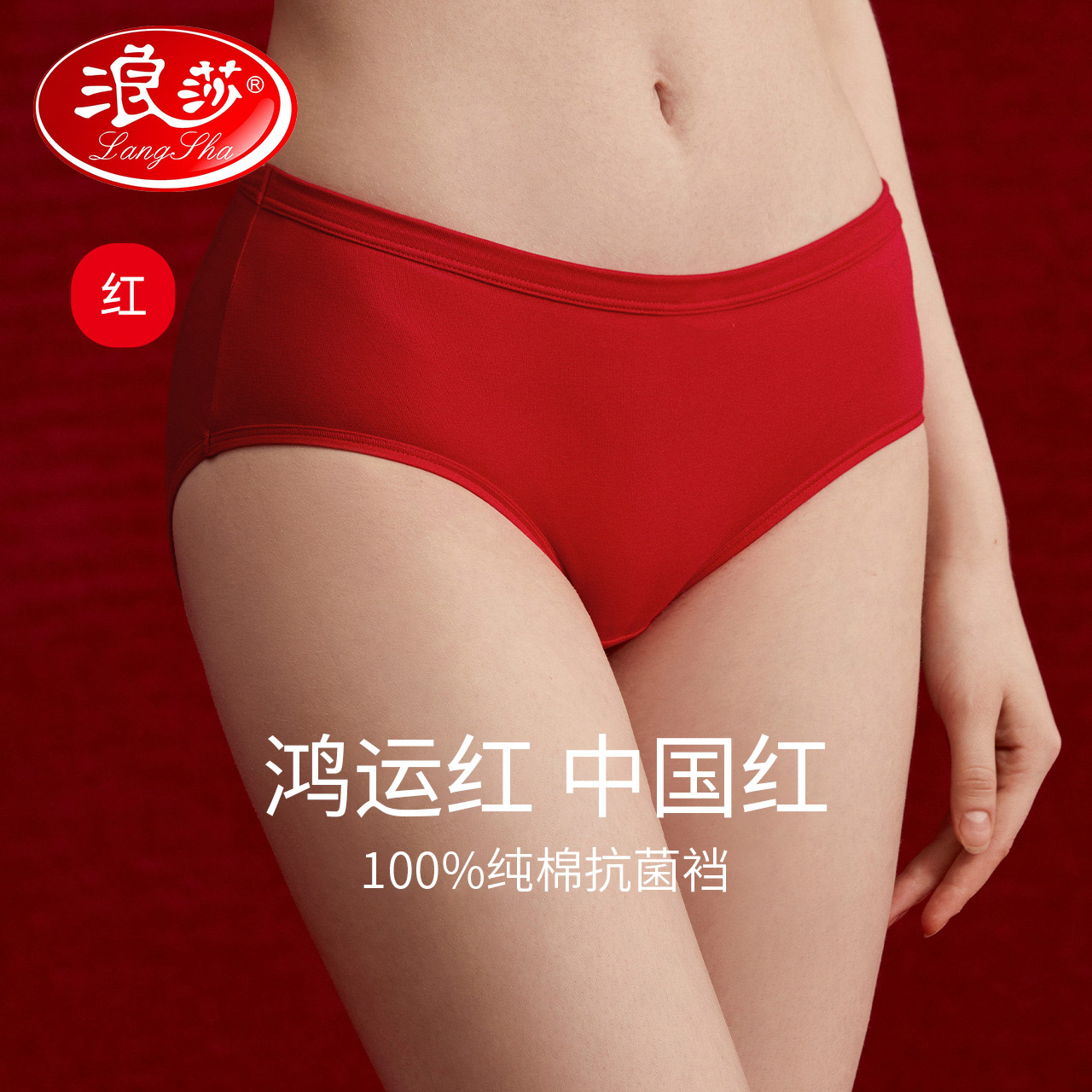 【产品名称:浪莎女士本命年内裤大红色纯棉抗菌裆新娘结婚礼物龙年中腰三角裤】
