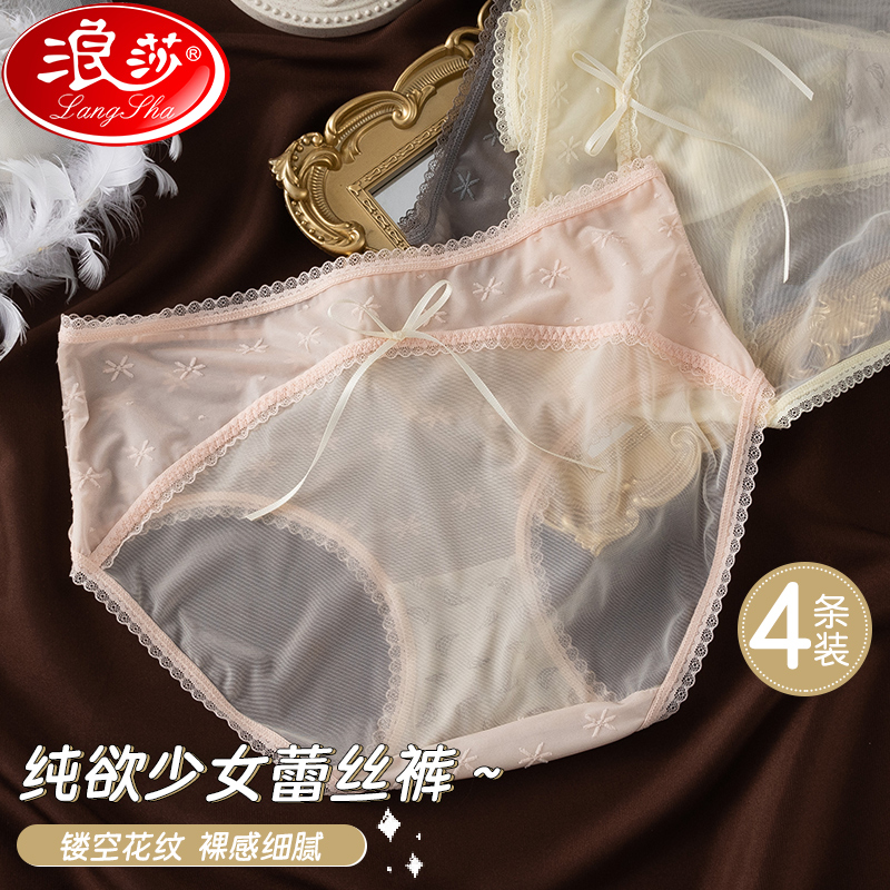 【产品名称:内裤女士夏季薄款性感蕾丝2023新款纯欲少女生无痕抗菌三角短裤LS】