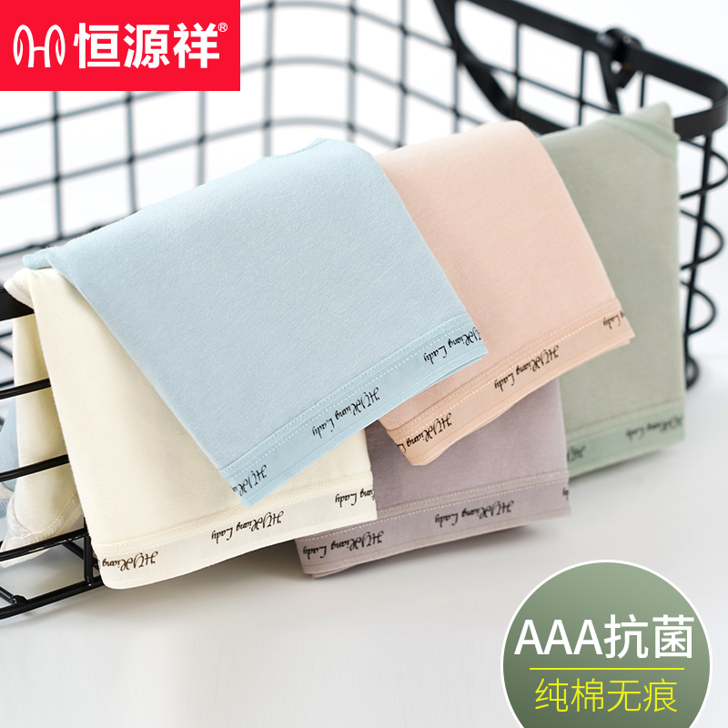 【产品名称:恒源祥纯棉女士内裤平角裤全棉透气无痕抗菌少女生三角短裤头中腰】