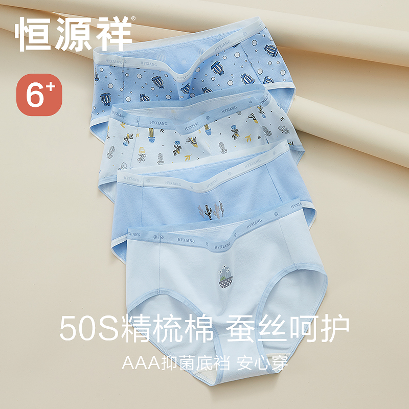 【产品名称:恒源祥女士内裤女纯棉蚕丝抗菌裆无痕夏季薄款少女生三角裤短裤头】