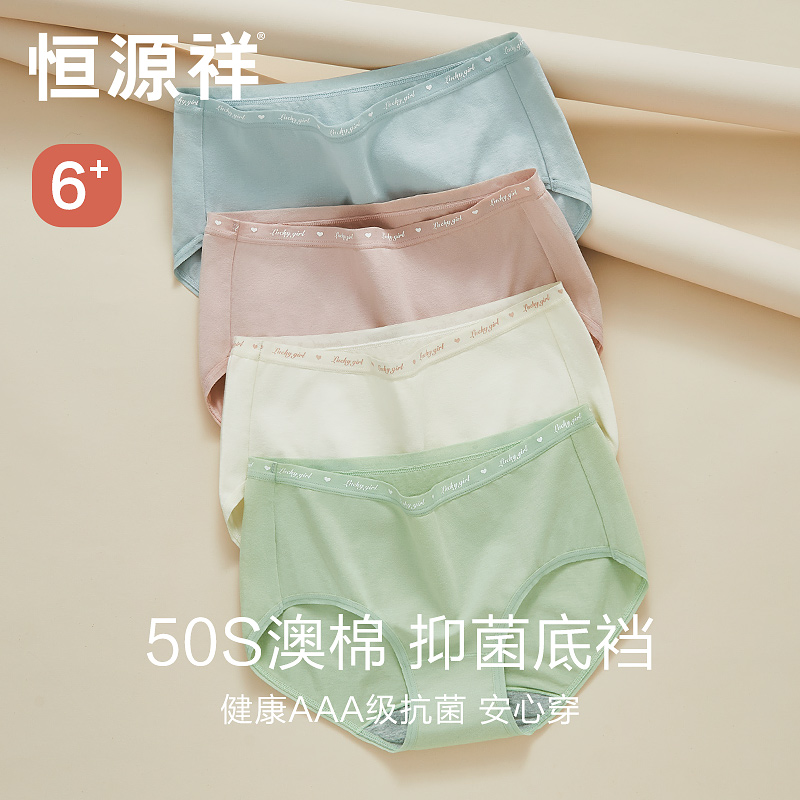 【产品名称:恒源祥女士内裤女纯棉全棉抗菌中腰性感无痕少女短裤透气三角裤头】
