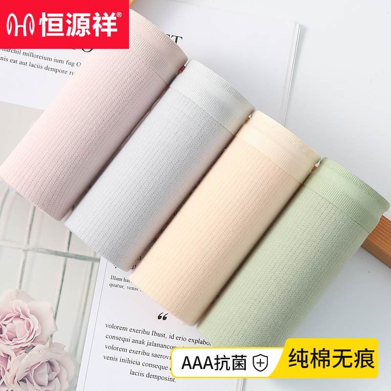 【产品名称:恒源祥内裤女纯棉抗菌中腰女士少女日系无痕短裤头女生三角平角裤】
