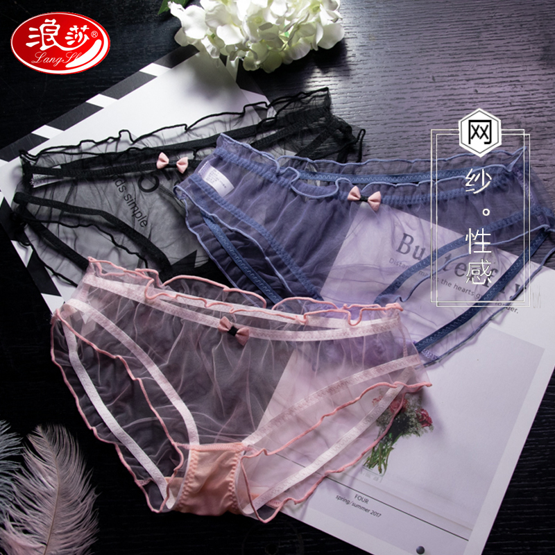【产品名称:浪莎性感蕾丝内裤女低腰火辣诱惑镂空透明透视网纱女士三角底裤衩】