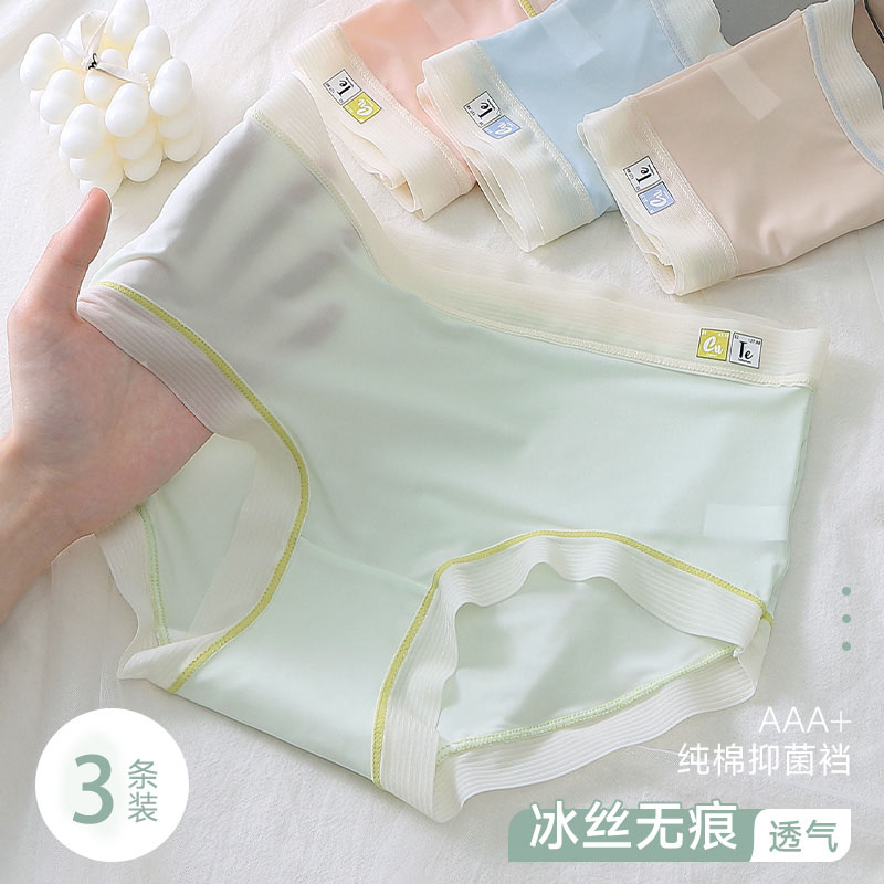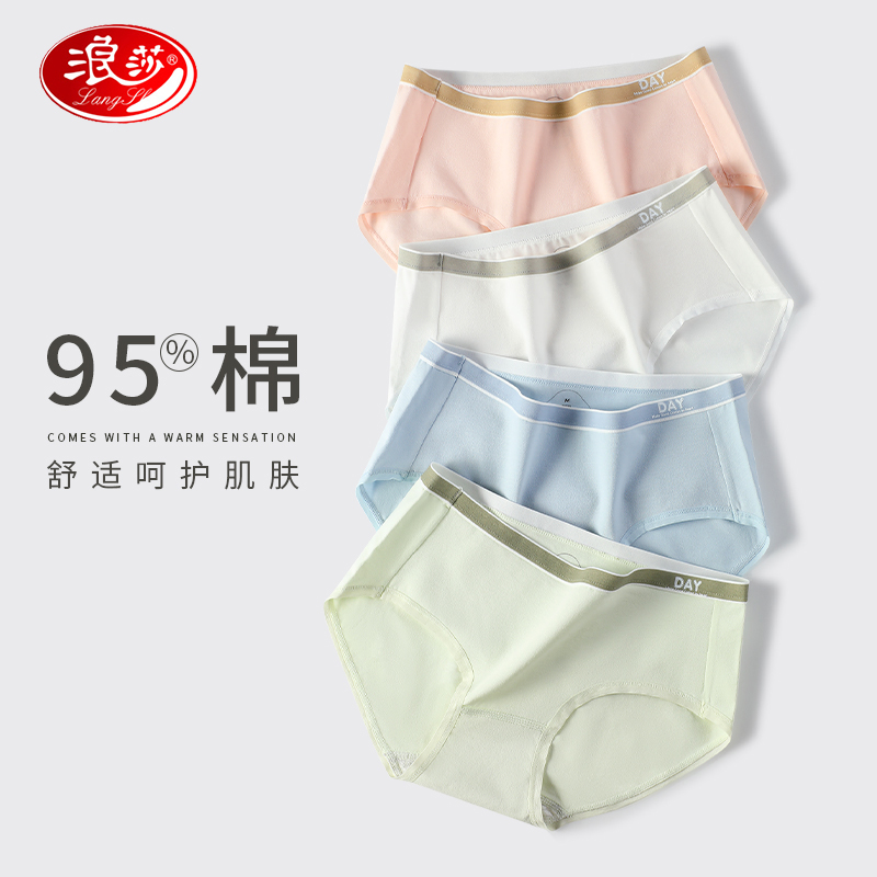 【产品名称:浪莎中腰撞色腰内裤女纯棉抗菌裆日系简约柔软透气包臀女士三角裤】