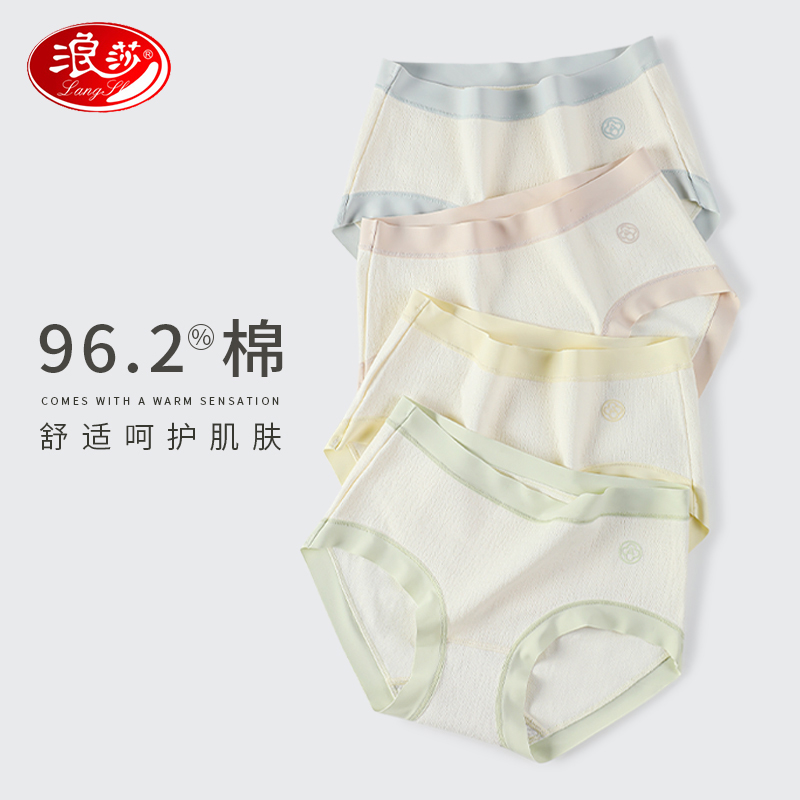 【产品名称:浪莎日系简约内裤女中腰无痕棉质透气裆舒适不卡裆包臀女士三角裤】