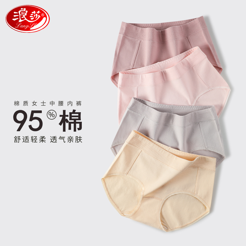 【产品名称:浪莎内裤女纯棉中腰抗菌舒适透气不夹臀大码包臀提臀女士三角短裤】