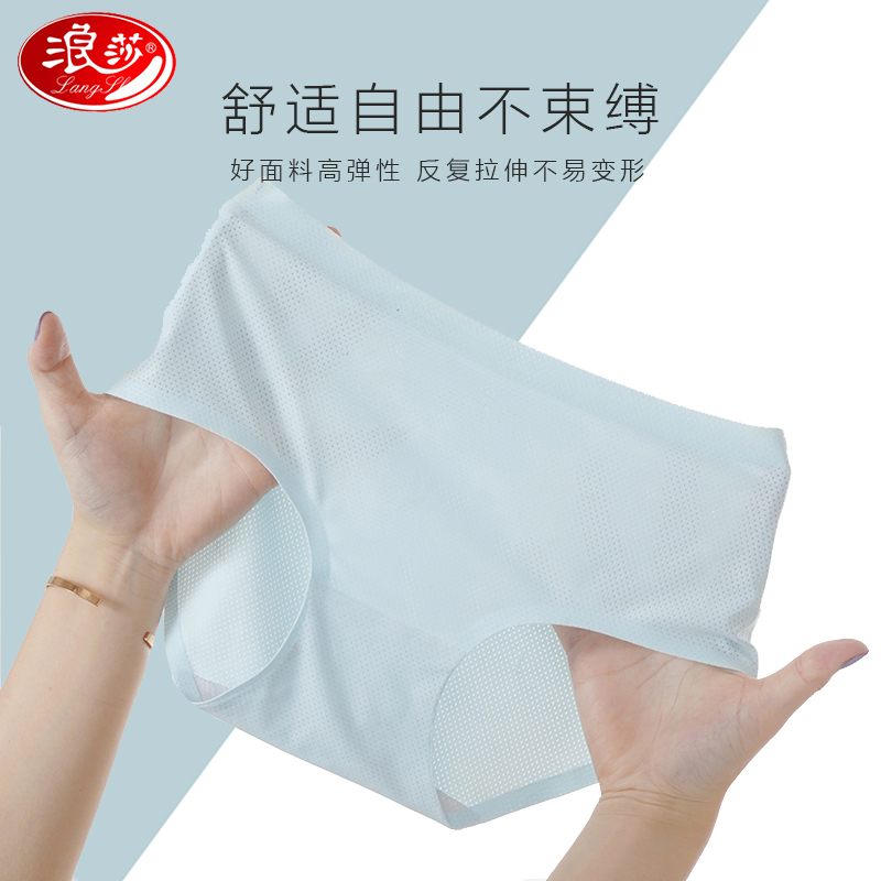 【产品名称:浪莎一片式无痕内裤女中低腰冰丝夏薄运动健身透气包臀女士三角裤】