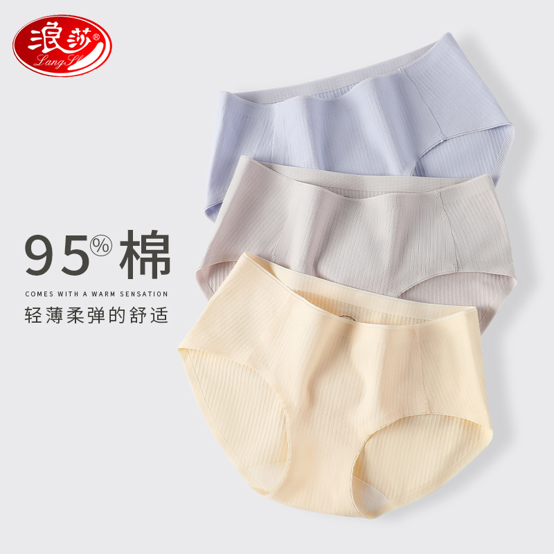 【产品名称:浪莎中腰无痕内裤女纯棉抗菌裆薄亲肤舒适透气大码包臀女士三角裤】