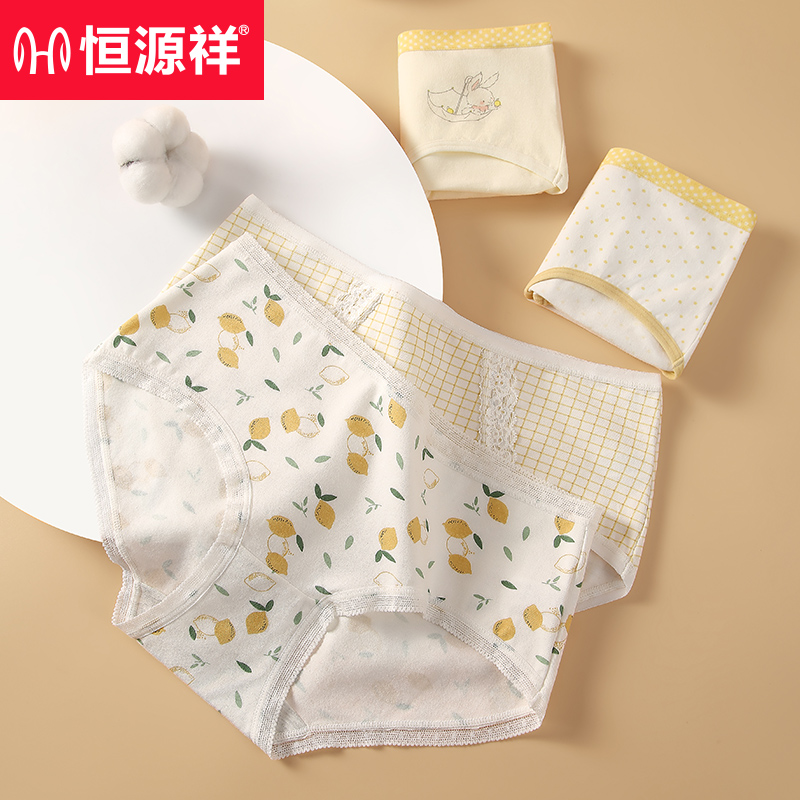 【产品名称:(预售)纯棉女士内裤平角裤全棉透气无痕抗菌少女生三角短裤头中腰】