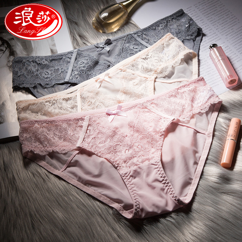 【产品名称:浪莎低腰内裤女性感蕾丝薄冰丝镂空提臀纯棉档舒适透气女士三角裤】