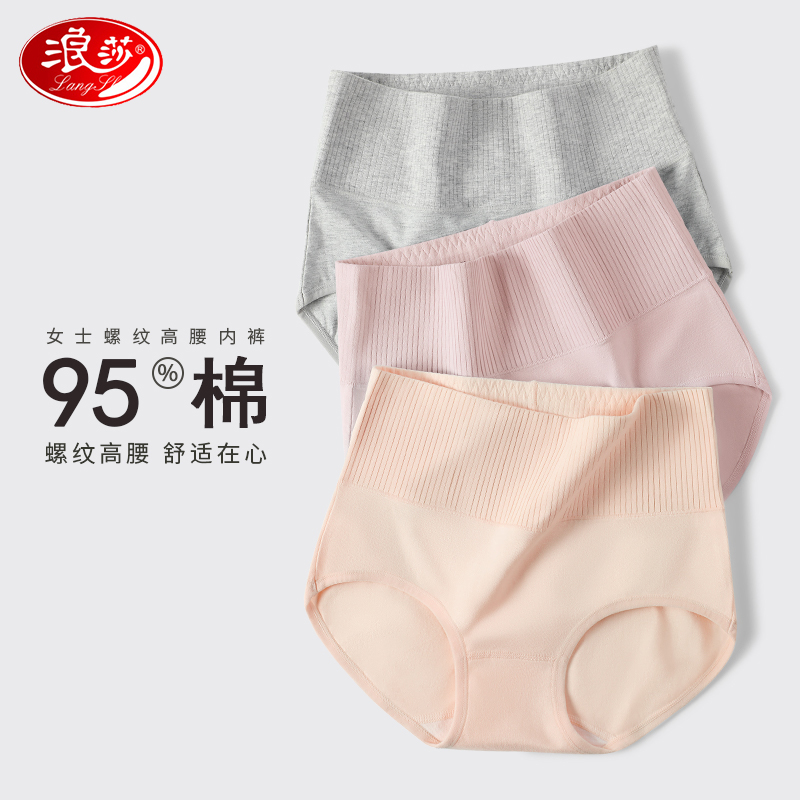 【产品名称:浪莎螺纹高腰收腹内裤女纯棉塑身束腰提臀大码舒适包臀女士三角裤】