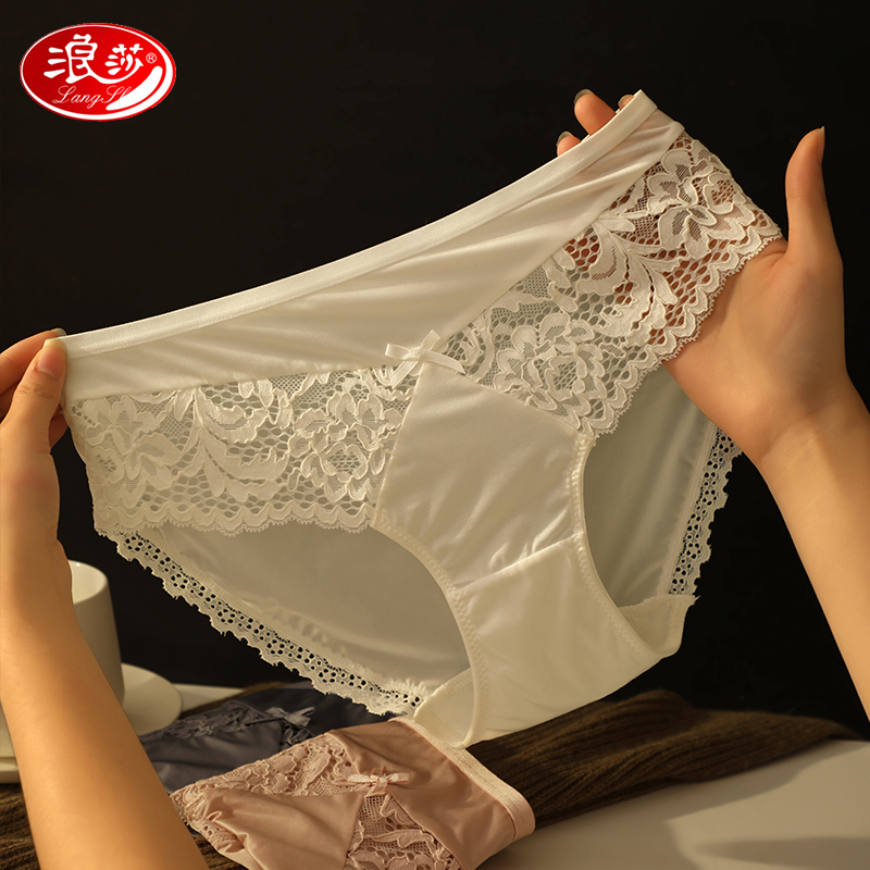 【产品名称:浪莎中低腰法式蕾丝内裤女性感浪漫镂空透明网纱包臀女士三角短裤】