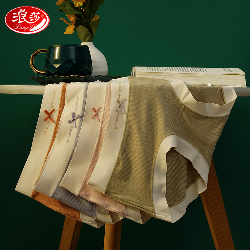 【产品名称:浪莎中腰无痕一片式抗菌内裤女柔软舒适透气抑菌日系女士三角短裤】