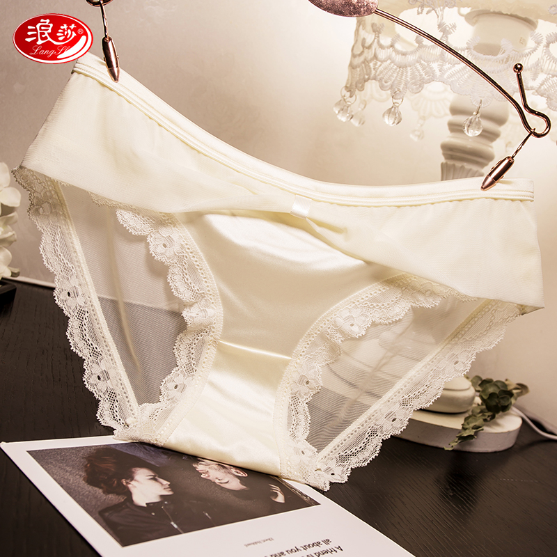 【产品名称:浪莎蕾丝内裤女低腰性感纯棉裆火辣镂空透明网纱薄包臀女士三角裤】