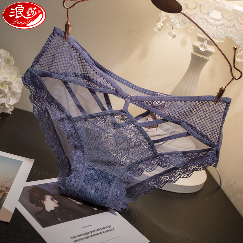 【产品名称:浪莎性感蕾丝透明内裤女薄款低腰绑带冰丝镂空诱惑网纱女士三角裤】