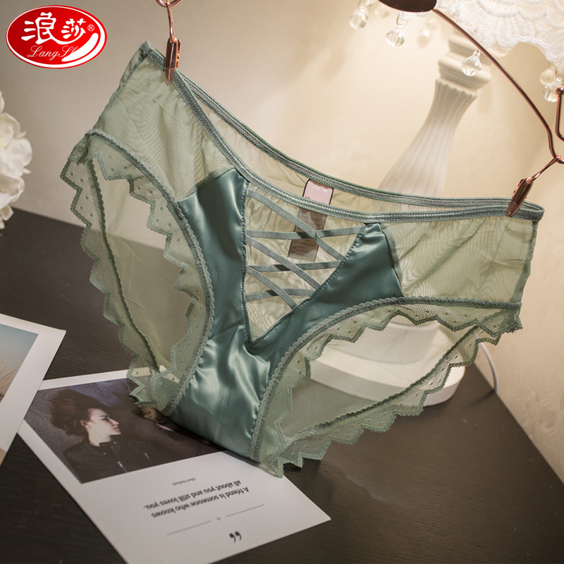 【产品名称:浪莎低腰蕾丝内裤女薄款系带欧美性感镂空透明火辣诱惑女士三角裤】