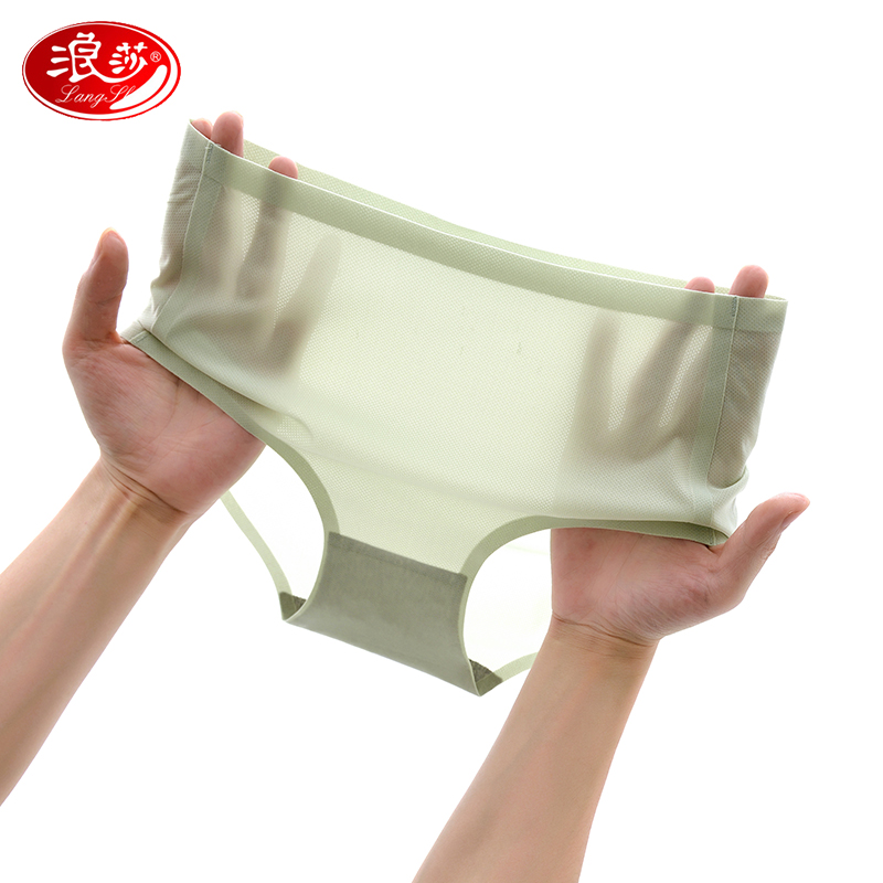 【产品名称:浪莎高腰透气孔内裤女抗菌无痕冰丝一片式裸感提臀包臀女士三角裤】