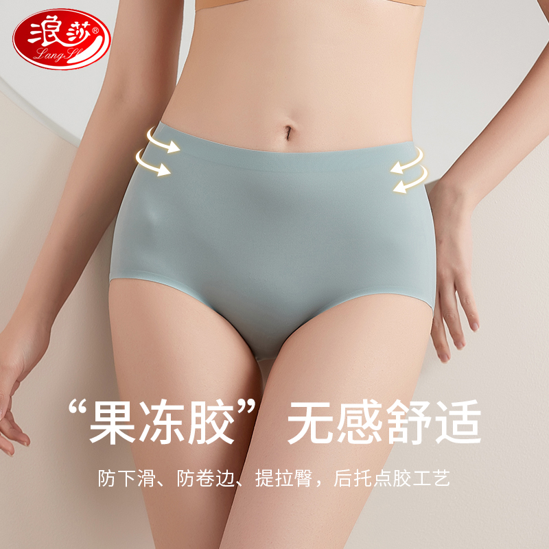 【产品名称:浪莎冰丝无痕内裤女薄蚕丝档抗菌一片式性感不夹臀包臀女士三角裤】