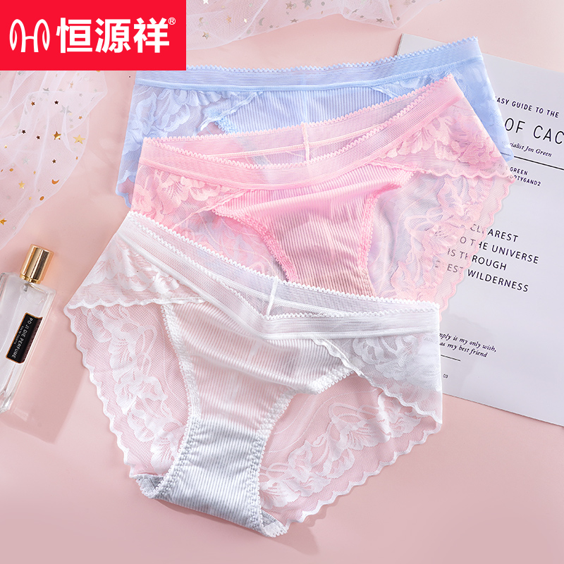 【产品名称:恒源祥内裤少女士蕾丝冰丝无痕夏季薄透气纯棉裆抗菌三角短裤性感】