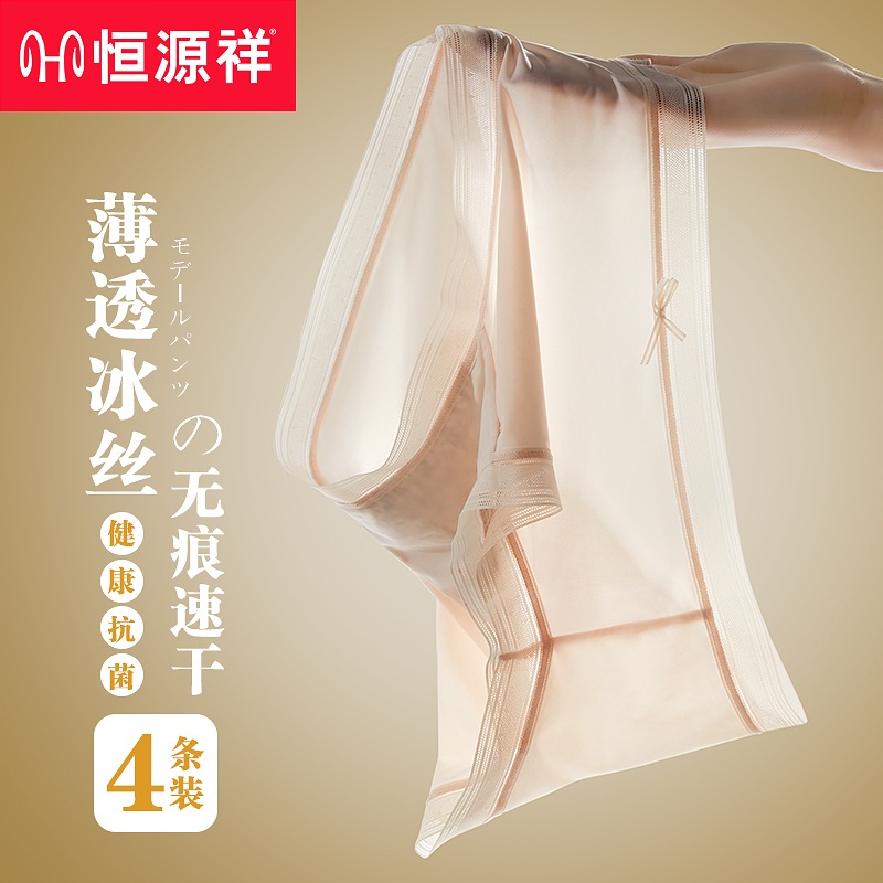 【产品名称:恒源祥无痕冰丝内裤女士夏季薄款透气抗菌纯棉裆少女生中腰三角裤】