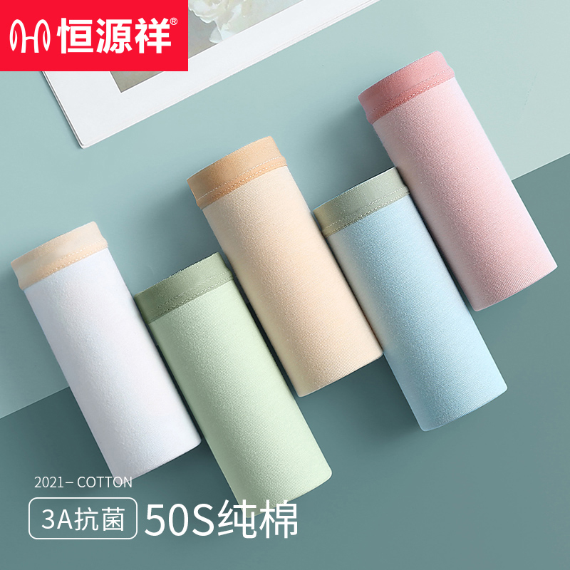 恒源祥纯棉女士内裤平角裤全棉透气无痕抗菌少女生三角短裤头中腰