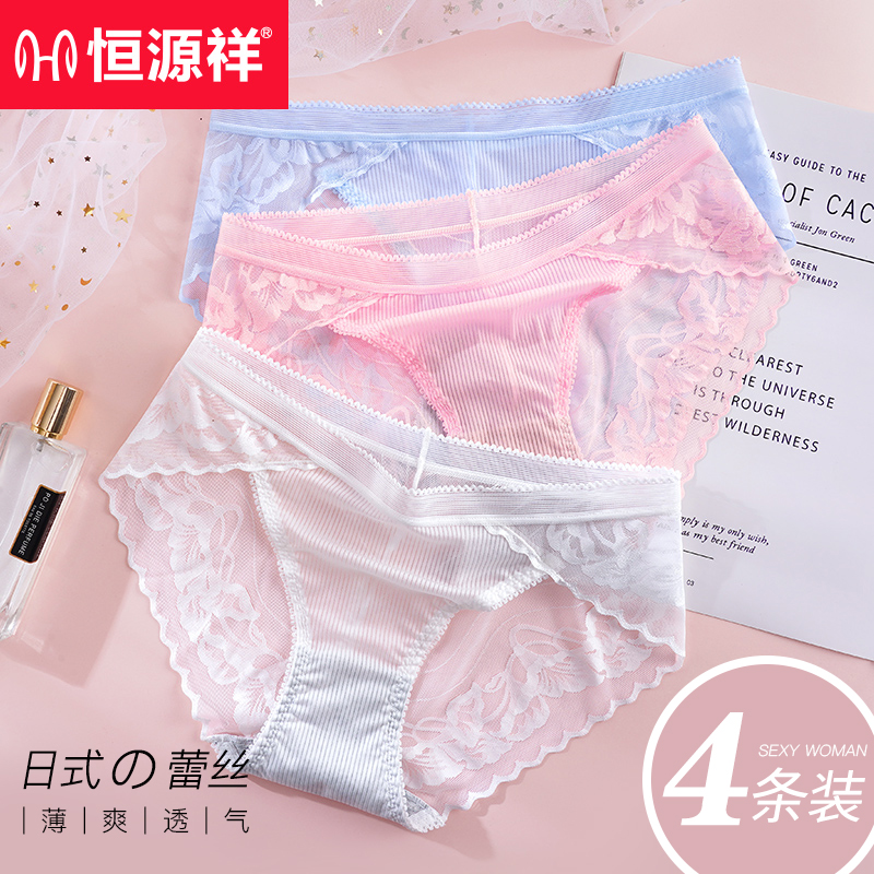 【产品名称:恒源祥三角内裤女士蕾丝抗菌无痕冰丝短裤夏季薄款透气少女纯棉裆】