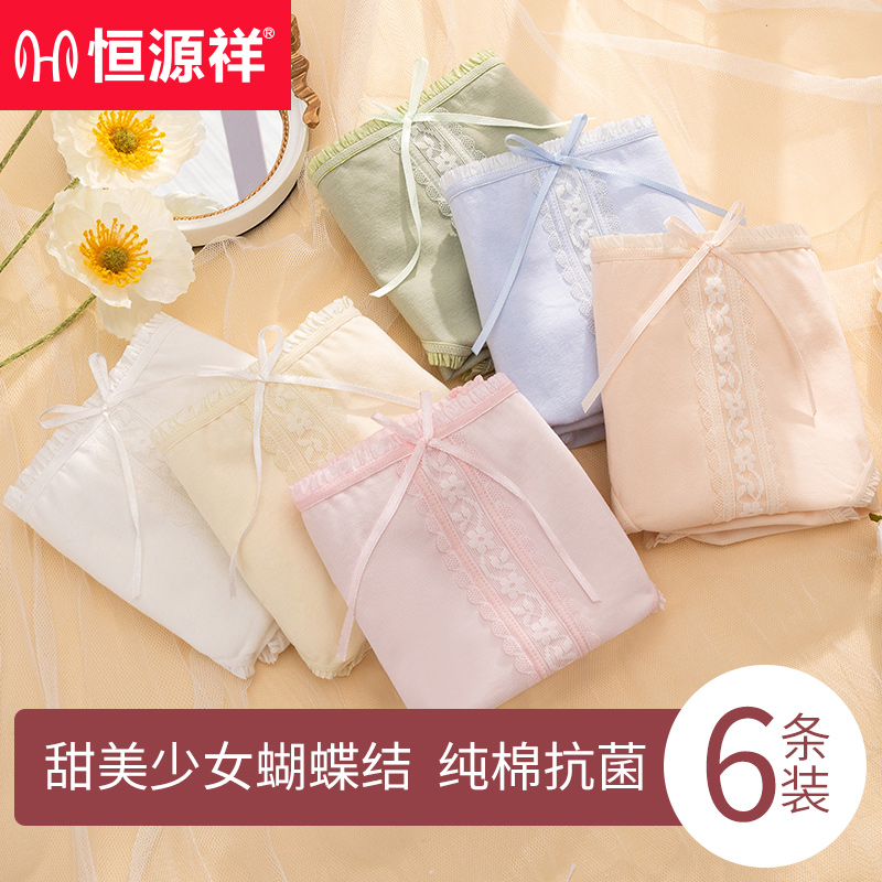 【产品名称:恒源祥纯棉女士内裤平角裤全棉透气无痕抗菌少女生三角短裤头中腰】