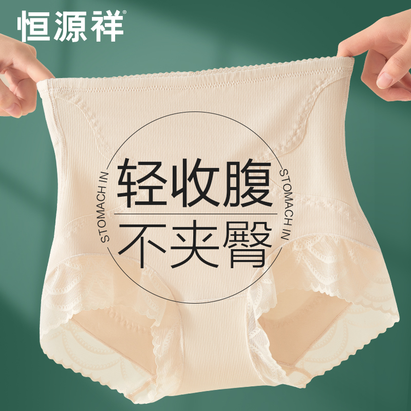 【产品名称:恒源祥蕾丝收腹裤高腰内裤女士精梳棉透气祛湿排汗收小肚子短裤头】
