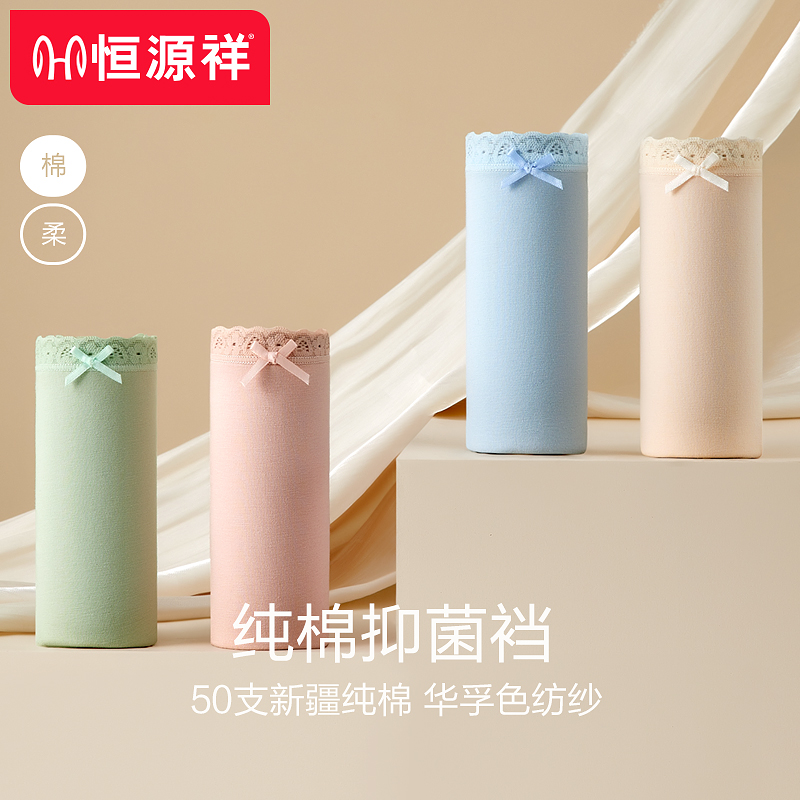 【产品名称:恒源祥内裤女士夏季纯棉薄款抗菌无痕中腰性感少女短裤全棉三角裤】