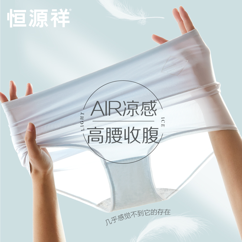 【产品名称:恒源祥冰丝内裤女士高腰无痕收腹薄款夏季凉感纯棉裆女生三角裤头】