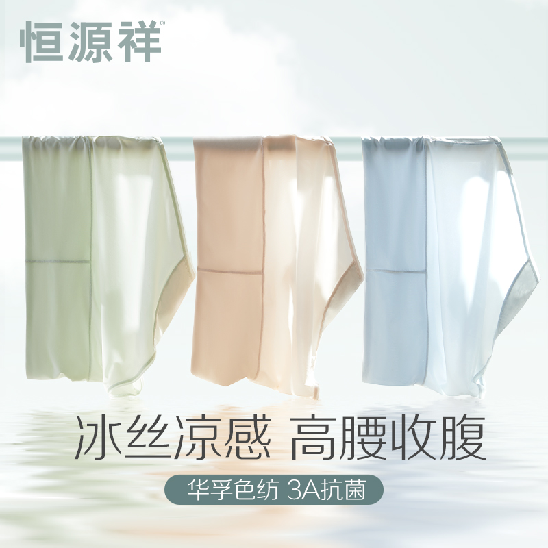 【产品名称:恒源祥冰丝凉感内裤女士高腰收腹纯棉裆三角裤薄款夏季提臀短裤头】