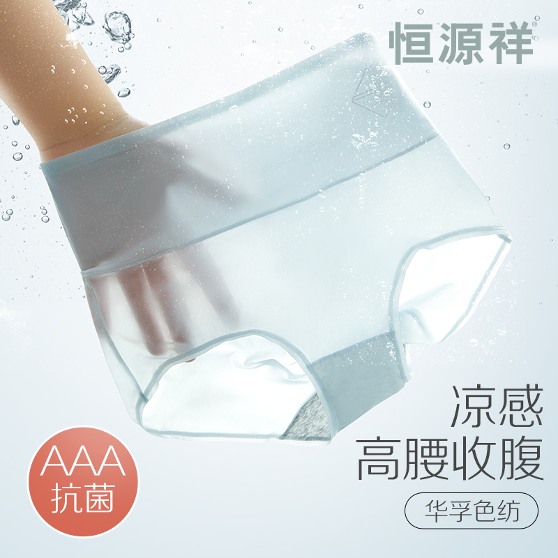 【产品名称:恒源祥冰丝高腰无痕内裤女士薄款夏季凉感短裤头收腹纯棉裆三角裤】