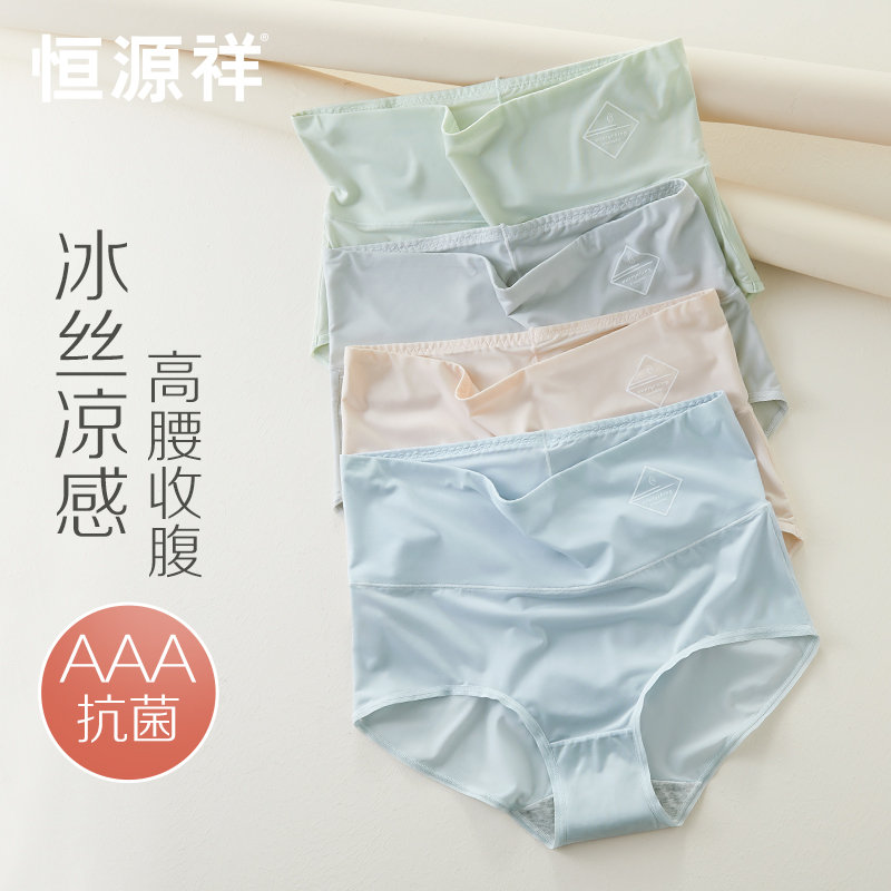 【产品名称:恒源祥凉感冰丝内裤女士高腰收腹纯棉裆三角裤薄款夏季透气短裤头】