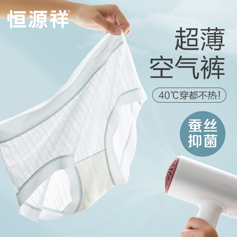 【产品名称:恒源祥冰丝内裤女士凉感无痕夏季薄款透气蚕丝抗菌底裆三角短裤头】