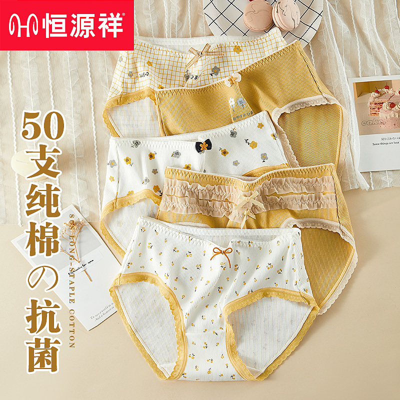 【产品名称:恒源祥内裤女士纯棉抗菌全棉裆夏季薄款中腰无痕少女生三角短裤头】